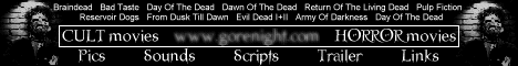 As you see, this site is currently UNDER CONSTRUCTION!! But we're workin' hard...some sections of the movie part works now! Just take a look! and don't forget: we still need videos, scripts, sounds, and Pictures !! if u have some and want to share email us!! -added Pulp Fiction Sounds & Links -added Reservoir Dog Sound -added From Dusk Till Dawn Links -added some "General"(not-to-special-movie-related) Links -Our Irc-channel is up! visit us: #Gorenight (IrcNet) |